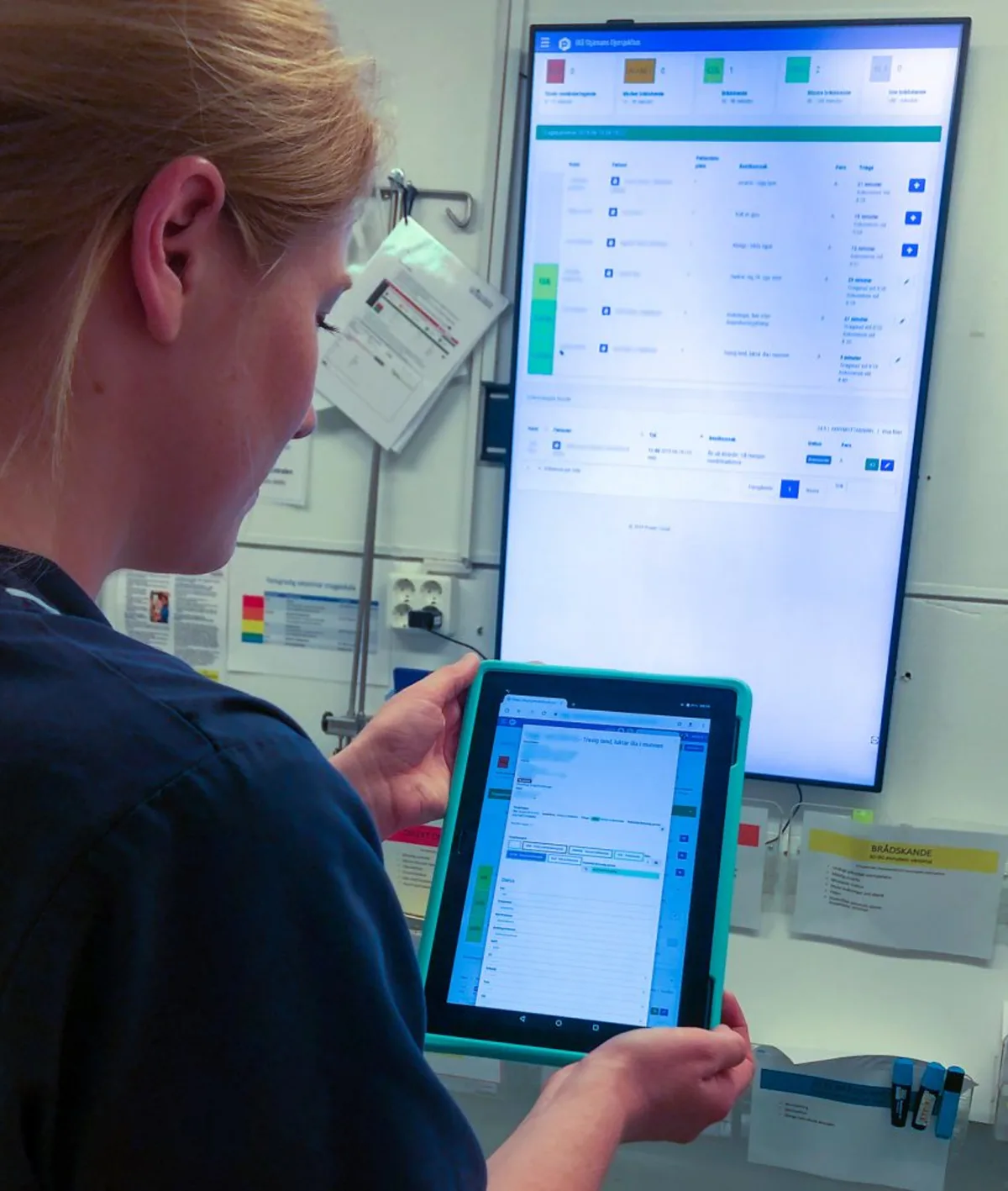 About 30 minutes after the emergency opened for the day, today's triage coordinator says she does not need the old triage papers anymore. It feels good to be able to write her triage directly on the computer and she feels that the team around her has a complete overview digitally. Project manager Holmberg looks happy! This is a big part of the changed routine.